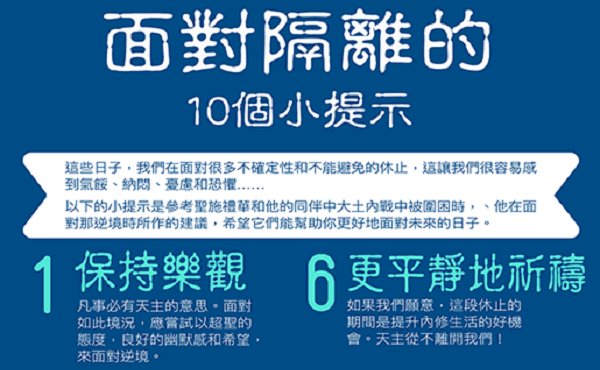 不过,这样表面上无所作为的时间也是一个履行公民责任的机会。善用自己的时间,团结一致地为受影响最严重的人祈祷;请不要忘记医护人员、政府官员,以及正在努力扭转这种状况的其他人士和机构。