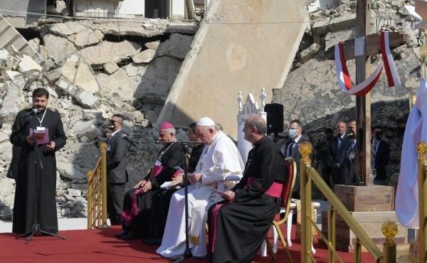 接著,教宗说道,“我强烈地体会到这次朝圣之旅的忏悔补赎的意义”。过去,“我未能亲近那些受尽折磨的人民、那殉道的教会,没有本著大公教会的名背起他们多年来背负的十字架,一个巨大的十字架,就如同放在克拉克斯(Qaraqosh)教堂入口处的那个大十字架”。