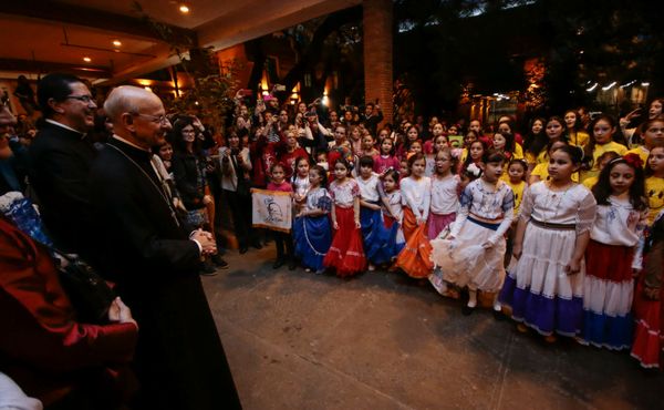 监督跟一些家庭在Villa Morra文化中心内欢度了一个中午时份。这些家庭的成员欢迎监督说:“我们多麽高兴您来探望我们。”