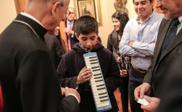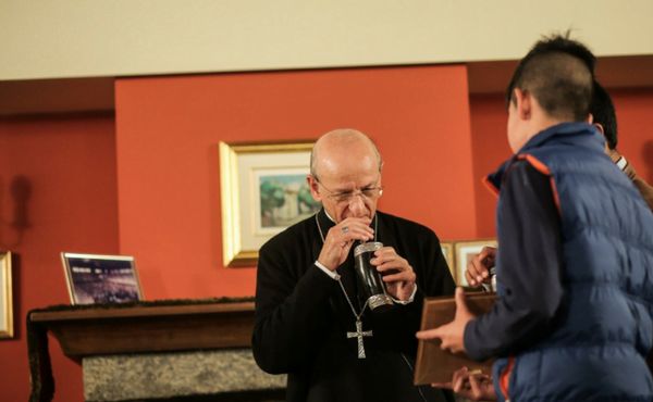 当监督探访“大湖”(Laguna Grande) 学校时,学生们送给他一件短袖汗衫,并且为监督準备了一种巴拉圭的传统饮品,tereré。