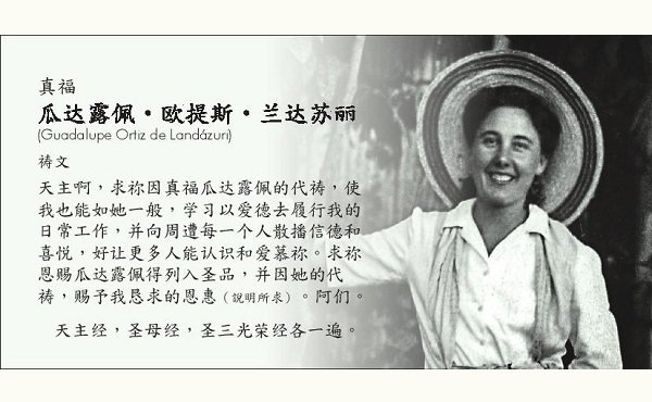 凡因瓜达露佩•欧提斯•兰达苏丽的代祷而获得恩惠者,请通知主业团在东亚区的列品案办事处:香港 九龙红磡黄埔花园红棉苑第四座二楼G室。