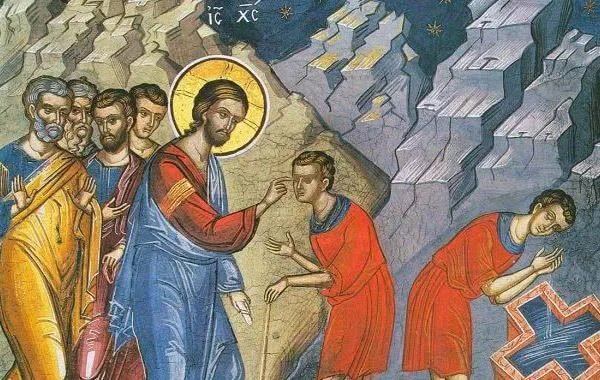 他們由耶里哥出來時,有許多群眾跟隨耶穌。有兩個瞎子坐在路旁,聽說耶穌路過,就喊叫說:「主,達味之子,可憐我們罷!」民眾斥責他們,叫他們不要作聲;他們反而更喊叫說:「主,達味之子,可憐我們罷!」耶穌就站住,叫過他們來,說:「你們願意我給你們作什麼?」他們回答說:「主,叫我們的眼睛開開罷!」耶穌動了慈心,摸了摸他們的眼睛;他們就立刻看見了,也跟着他去了。(瑪 20:29-34)