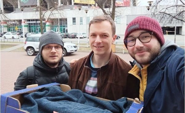 2月26日,星期六。我們起草了採購和輸送的行動計畫。並設立了迎接的地點,提供食物和熱餐,也供應大量的尿布。回家後,我與愛妻商量。我們裝滿了兩輛車子捐贈的物品:一張嬰兒床、一個嬰兒車、置物桌、衣服、尿布和清潔產品。我們甚至在一家百貨公司買到一些烏克蘭巧克力,希望能給孩子們帶來些笑容。但是還有許多放不下的東西,所以我們必須找輛更大的車才行。就在那剎那,我兒子打來電話,「嗨,爸爸,我的朋友有兩輛箱型車,他願意借我們來幫助烏克蘭難民。」晚上我們回家,打包了所有的禮物。我和朋友兩個人準備一大早出發。