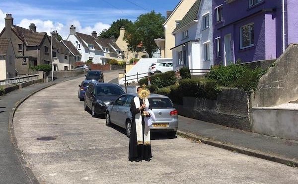 我所牧養的是Tenby堂區。它是威爾士西部的一個美麗的海邊市鎮。倘若不是封城,這個地方在每年的這個時候都吸引不少遊客前來,而本來也是個美好的傳播福音時刻。上主卻另有祂的主意,並在我的祈禱中顯示出來⋯⋯我利用威爾士對旅遊限制的放寬,向該區的家庭提供一個前所未有的嘗試,在他們自己家的花園裏進行明供聖體及祝福的機會。我並不確定他們會有什麼反應。最後,很多家庭要求上主到他們的家探訪。我因此而需要延長探訪的日子至聖體聖血節以後幾天,傳統上屬於聖體聖血節的「八日慶期」之內。總共有36個家庭參與此事宜。