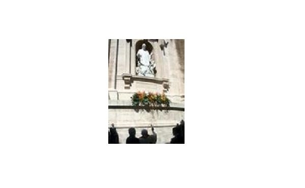 教宗接見朝聖人士之後,便到聖伯多祿大殿後面左側的地方停下來,為新安置在大殿後面外牆壁龕上的聖施禮華大理石雕像行祝福禮。遵照先教宗若望保祿二 世的安排,聖伯多祿大殿背面這一部分外牆上的所有壁龕,都將用來安置當代的聖人雕像。聖施禮華是中文名字,他是主業團的創辦人,西班牙籍的若瑟瑪利亞•施禮華(Josemaria Escriva)。他的雕像是義大利雕刻家羅馬諾•柯西(Romano Cosci)費時一年的作品,採用義大利西北部大理石名出產地馬薩•卡拉拉的整塊白色大理石雕成的,高五公尺多。