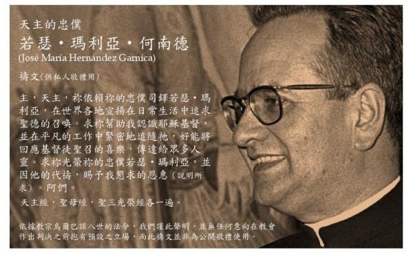 凡因天主忠僕若瑟•瑪利亞•何南德的代禱而獲得恩惠者,請通知主業團在東亞區的列品案辦