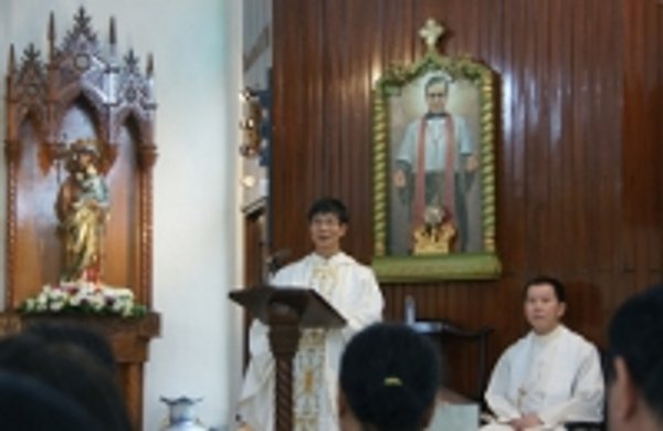 林吉城神父在彌撒中講道時說:「今天敬禮主業會創辦人聖施禮華,選擇在聖母顯靈聖牌堂舉行是非常恰當的,因為聖施禮華在兩歲的時候,生了重病,群醫束手無策,而他的父母將他帶到聖母朝聖地奉獻給聖母,結果他奇蹟般地痊癒了,聖人的生命來自聖母的恩佑,亦可說是天主的恩賜及記號,聖施禮華在十六歲的時候,在冰天雪地中看見赤足的腳印,震撼了他的心,自問為何有人願意做這樣的犧牲,後來才知道這些腳印,是來自於赤足加爾默羅會士,因此他常問天主,我能向祢奉獻什麼?也種下了追隨基督,成為司鐸的決心。