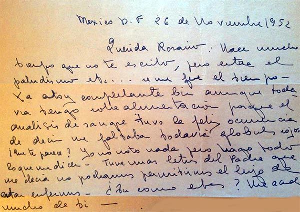 一周之後,瓜達露佩在寫給羅薩里奧奧爾貝戈佐的一封信中提到聖施禮華的那封信,羅薩里奧當時住在羅馬,與創辦人一起工作:「我已經好久沒有寫信了,但現在患了這個瘧疾……我不知道時間跑到哪裡去了。我現在完全沒事了,雖然我仍然飲食過量,這要歸功給驗血報告顯示我還是缺乏紅血球的好消息。你認為怎麼樣?我沒什麼感覺,但我就照著她們要我做的去做。我收到幾封父親的來信,他告訴我,我們承擔不起生病的『奢侈』。你怎麼樣呢?我很想念你。」(墨西哥,1952年11月26日)